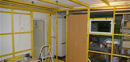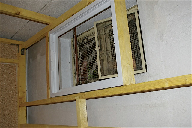 Um ein bisschen Tageslicht zu haben, habe ich ein Fenster in der Innenwand vor das Kellerfenster montiert. Das Fenster stammt aus dem Baumarkt. Doppelverglast.